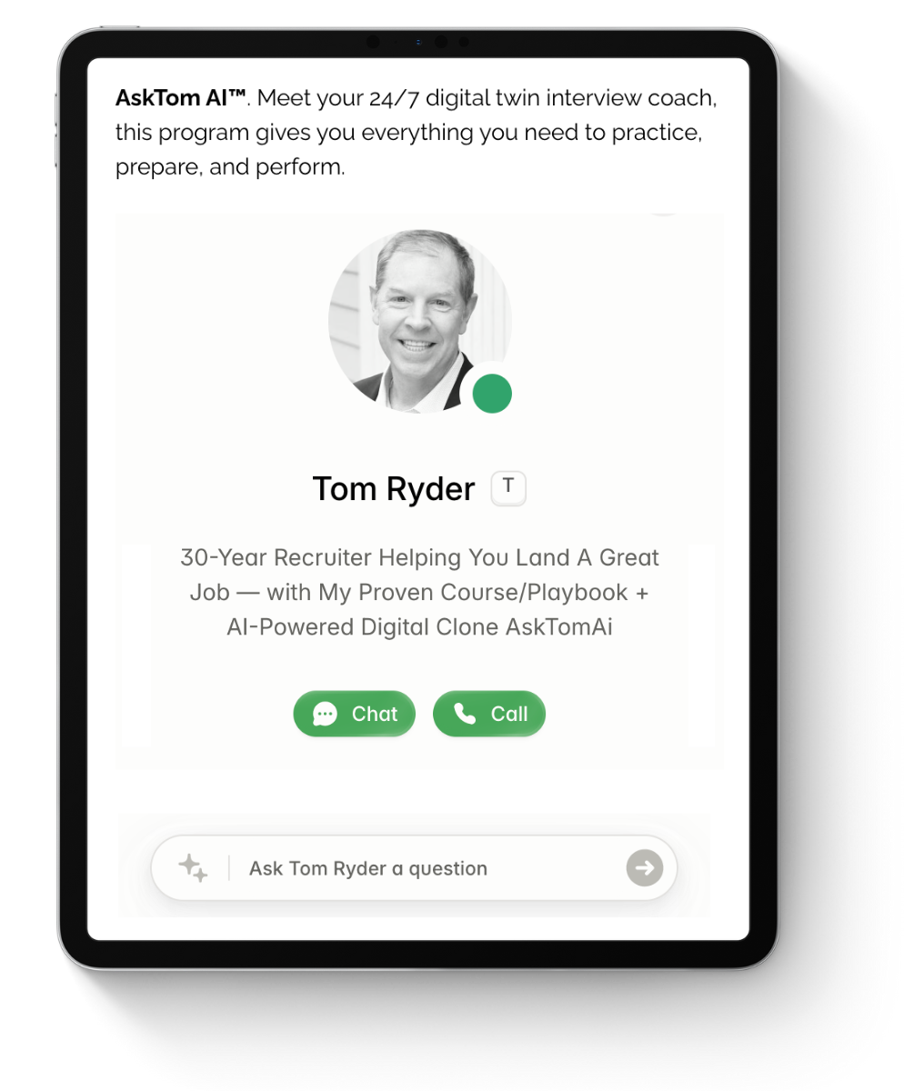 Now, through Tom Ryder’s Interview Course & Playbook™ + AskTomAI™, Tom is bringing that system directly to you.
